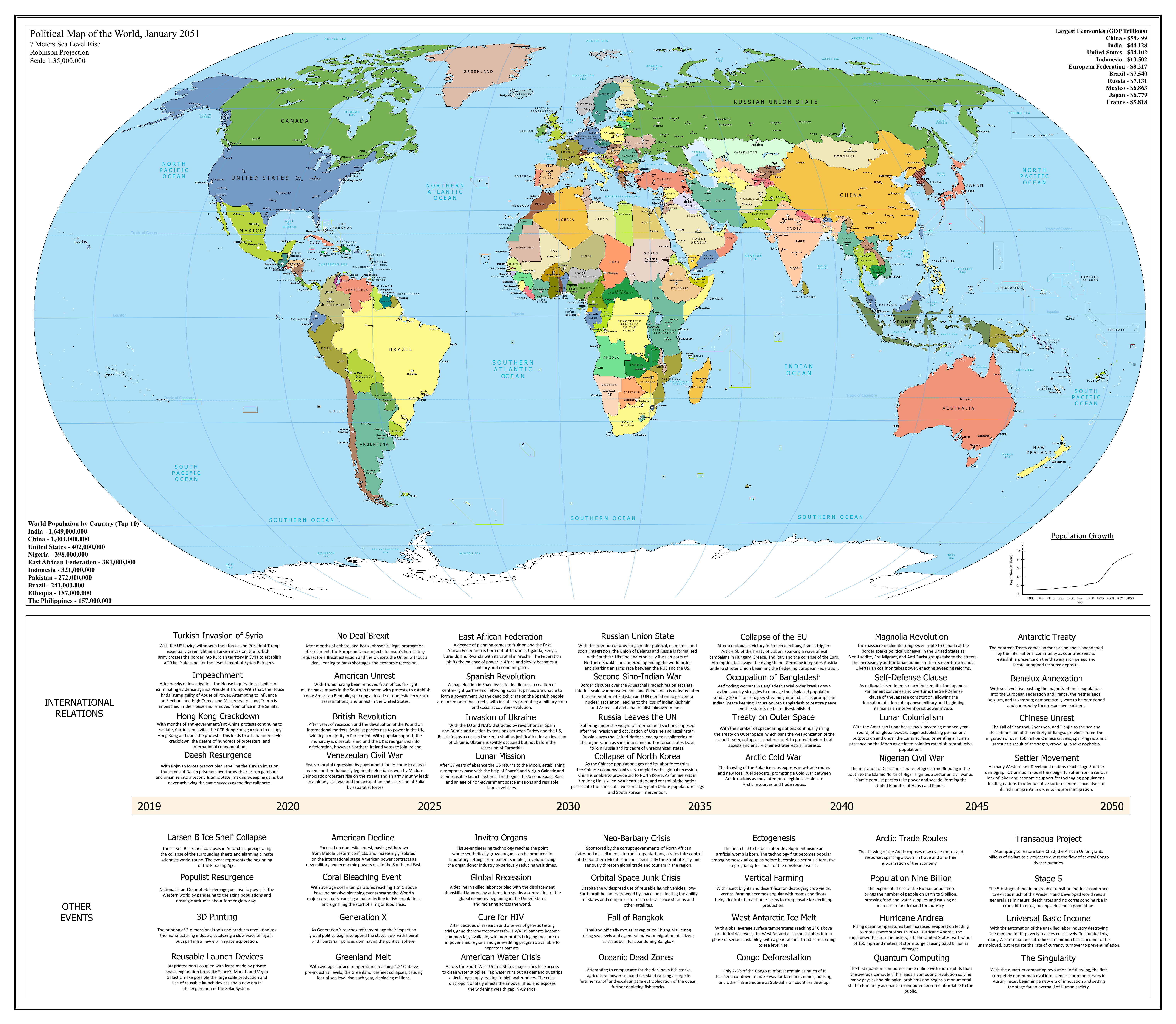 Geopolitical Map of the Earth 2051 (Pre Covid) by Charles Porter